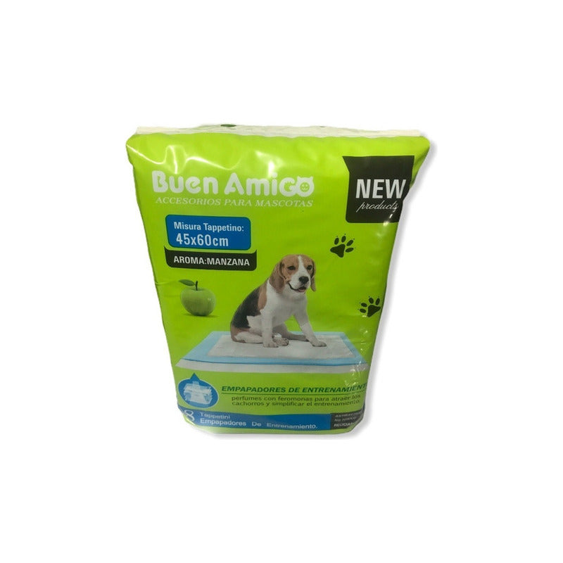 Empapador de entrenamiento para perros, perfumado con feromonas para atraer a cachorros y simplificar su entrenamiento. 8 unidades. Aroma Manzana. ----------------------------------------------- Respuestas a preguntas frecuentes ----------------------------------------------- - ¿Hacen envíos? Si, hacemos envíos a todo el país, a través de Mercado Envíos. Contamos con envío rápido a domicilio (o envíos Flex) sólo para Santiago, si compras antes de las 12:00 ¡Recibes el mismo día*! *Envío rápido a domicilio: Entregas entre 14:00 y 22:30. El cliente no puede elegir horario de entrega, por lo que debe estar disponible para recibir en dicha ventana horaria. ¡Si nos dejas tu correo el chofer te avisará cuando esté en camino! - ¿Cómo hago seguimiento del envío? En el detalle de tu compra puedes realizar el seguimiento de tus productos. - ¿Hace envíos a regiones? Si hacemos envíos a regiones Se realizan a sucursal de la empresa de correos de su conveniencia (starken, Chilexpress, valmontt, etc). Envíos por pagar. - Quiero comprar varios productos, ¿Puedo pagar un solo envío? Debes agregar los productos al carrito para que se agreguen en una sola compra y así Mercadolibre calcule un solo envío. - ¿Puedo retirar el artículo por una sucursal? Si, contamos con tienda física ubicada en Quinta Normal. - ¿Cómo se paga? Puedes pagar a través de todos los medios de pago que ofrece Mercado Pago. - ¿Qué hago si no estoy conforme con la compra? Cualquier problema que tengas, te pedimos que te contactes con nosotros mediante la mensajería directa para solucionarlo a la brevedad. ¡¡CUALQUIER OTRA DUDA, ESTAMOS A TU DISPOSICIÓN!! ¿Hacen Factura?: Sí, emitimos factura correspondiente y debes indicarnos por mensajería directa los datos para emisión. Este documento será el respaldo de tu transacción. Será emitido a más tardar el último día del mes realizada la compra y se podrá visualizar en el detalle de su compra. PRODUCTOS COMERCIALIZADOS POR METALFER
