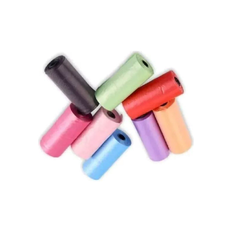 Bolsas para desechos de mascotas Son bolsas de recambio que vienen en rollito para dispensadores que comunmente llevas a los paseos por el parque mientras paseas con tu mascota. Vienen con colores variados aleatoriamente para nunca perder el estilo, incluso al recoger las heces de tu mascota! Estas bolsitas convierten la labor de ser un dueño responsable, en algo extremadamente sencillo, al ser resistentes y duraderas, podrás tomarlas como un guante, recoger los deshechos de tu mascota y ponerlos en la basura, todo esto mientras tu mano permanece limpia. Pack de 6 Rollos (15 Bolsas por Rollo). ----------------------------------------------- Respuestas a preguntas frecuentes ----------------------------------------------- - ¿Hacen envíos? Si, hacemos envíos a todo el país, a través de Mercado Envíos. Contamos con envío rápido a domicilio (o envíos Flex) sólo para Santiago, si compras antes de las 12:00 ¡Recibes el mismo día*! *Envío rápido a domicilio: Entregas entre 14:00 y 22:30. El cliente no puede elegir horario de entrega, por lo que debe estar disponible para recibir en dicha ventana horaria. ¡Si nos dejas tu correo el chofer te avisará cuando esté en camino! - ¿Cómo hago seguimiento del envío? En el detalle de tu compra puedes realizar el seguimiento de tus productos. - ¿Hace envíos a regiones? Si hacemos envíos a regiones Se realizan a sucursal de la empresa de correos de su conveniencia (starken, Chilexpress, valmontt, etc). Envíos por pagar. - Quiero comprar varios productos, ¿Puedo pagar un solo envío? Debes agregar los productos al carrito para que se agreguen en una sola compra y así Mercadolibre calcule un solo envío. - ¿Puedo retirar el artículo por una sucursal? Si, contamos con tienda física ubicada en Quinta Normal. - ¿Cómo se paga? Puedes pagar a través de todos los medios de pago que ofrece Mercado Pago. - ¿Qué hago si no estoy conforme con la compra? Cualquier problema que tengas, te pedimos que te contactes con nosotros mediante la mensajería directa para solucionarlo a la brevedad. ¡¡CUALQUIER OTRA DUDA, ESTAMOS A TU DISPOSICIÓN!! ¿Hacen Factura?: Sí, emitimos factura correspondiente y debes indicarnos por mensajería directa los datos para emisión. Este documento será el respaldo de tu transacción. Será emitido a más tardar el último día del mes realizada la compra y se podrá visualizar en el detalle de su compra. PRODUCTOS COMERCIALIZADOS POR METALFER