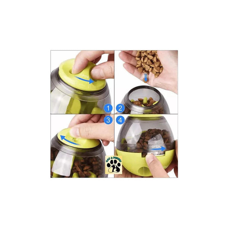 La bola de juguete para perros reduce el aburrimiento y el comportamiento destructivo a través del juego y el ejercicio saludables mientras se desarrolla y el comportamiento destructivo a través del juego y el ejercicio saludables mientras se desarrolla y mantiene el estado de alerta físico de su perro, para cumplir con sus instintos de caza. Especificación: Color: Verde. características: 1. Es un juguete divertido para buscar perros, puede dejar que el perro lo vea, huela, lo escuche y encuentre los bocadillos al lado del juguete. ¡Podría despertar el interés y el apetito de los perros! 2. Ralentiza la alimentación: cuando al poner una porción de la comida de su perro en este juguete, no tendrán otra opción. pero solo para comer lo que se dispensa. Necesitan más trabajo y se necesitará actividad física para comer. Este trabajo duro es recompensado con comida o golosinas una vez que salen del juguete. El juguete ralentiza la alimentación para ayudar con la digestión y la hinchazón. 3. Ya no está aburrido: la bola de juguete para perros reduce el aburrimiento y el comportamiento destructivo a través del juego y el ejercicio saludable mientras se desarrolla y el comportamiento destructivo a través del juego y el ejercicio saludable mientras desarrolla y mantiene el estado de alerta físico de su perro, para cumplir con sus instintos de caza. 4. Se separa para facilitar la limpieza: la bola de juguete interactiva se desenrosca fácilmente para agregar alimentos o golosinas, así como para facilitar la limpieza. Lave a mano cada parte con agua tibia y jabonosa. Enjuague y seque antes de llenar. Instrucciones: 1. El tamaño del orificio con fugas de golosinas es ajustable ya que hemos diseñado un interruptor flexible en el juguete, que se puede quitar para controlar el tamaño del orificio para que quepa las golosinas. Entonces, el juguete es adecuado para tipos de golosinas. 2. Diseñamos tres agujeros abiertos en la parte superior de la tapa del juguete, para que los perros puedan oler las golosinas y la tapa también puede abrirse fácilmente para agregar más golosinas al juguete. 3. Aquí tiene dos marcas en el juguete, cuando ensambla las dos partes, solo necesita alinear las dos marcas y girar la parte inferior hacia la derecha.