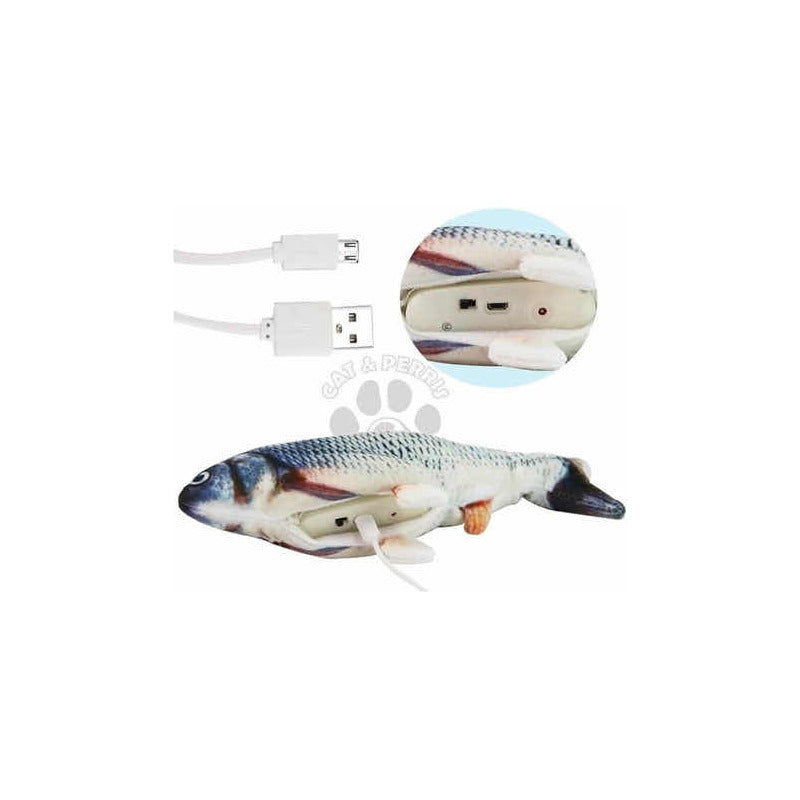 Pescado con movimiento y batería recargable por cable usb. Se activa al tocarlo, moviendo su cola simulando un pescado real. Cambia automáticamente los ritmos de movimiento, siendo más llamativo para tu gato. También cuenta con interruptor de encendido y apagado. Incluye bolsa sellada de catnip para rellenarlo y estimular a tu gato a jugar con él. Cuenta con una carga inicial y cuando se descargue, sólo debes recargar su batería alrededor de 15 minutos mediante el cable usb incluido y quedará listo para que tu gato disfrute durante mucho tiempo jugando con él.