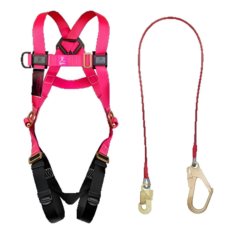 Arnés Completo Color Rosa + Cabo De Vida Acero Escala