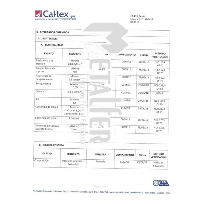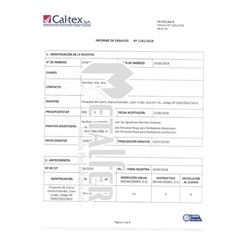Chaqueta Soldador de cuero color natural Costuras full hilo Kevlar, velcro y broches en cierre dalentero, ajuste con velcro en las muñecas. Protección para trabajos de soldadura y altas temperaturas. Certificado Caltex. ----------------------------------------------- Respuestas a preguntas frecuentes ----------------------------------------------- - ¿Hacen envíos? Si, hacemos envíos a todo el país, a través de Mercado Envíos. Contamos con envío rápido a domicilio (o envíos Flex) sólo para Santiago, si compras antes de las 12:00 ¡Recibes el mismo día*! *Envío rápido a domicilio: Entregas entre 14:00 y 22:30. El cliente no puede elegir horario de entrega, por lo que debe estar disponible para recibir en dicha ventana horaria. ¡Si nos dejas tu correo el chofer te avisará cuando esté en camino! - ¿Cómo hago seguimiento del envío? En el detalle de tu compra puedes realizar el seguimiento de tus productos. - ¿Hace envíos a regiones? Si hacemos envíos a regiones Se realizan a sucursal de la empresa de correos de su conveniencia (starken, Chilexpress, valmontt, etc). Envíos por pagar. - Quiero comprar varios productos, ¿Puedo pagar un solo envío? Debes agregar los productos al carrito para que se agreguen en una sola compra y así Mercadolibre calcule un solo envío. - ¿Puedo retirar el artículo por una sucursal? Si, contamos con tienda física ubicada en Quinta Normal. - ¿Cómo se paga? Puedes pagar a través de todos los medios de pago que ofrece Mercado Pago. - ¿Qué hago si no estoy conforme con la compra? Cualquier problema que tengas, te pedimos que te contactes con nosotros mediante la mensajería directa para solucionarlo a la brevedad. ¡¡CUALQUIER OTRA DUDA, ESTAMOS A TU DISPOSICIÓN!! ¿Hacen Factura?: Sí, emitimos factura correspondiente y debes indicarnos por mensajería directa los datos para emisión. Este documento será el respaldo de tu transacción. Será emitido a más tardar el último día del mes realizada la compra y se podrá visualizar en el detalle de su compra. PRODUCTOS COMERCIALIZADOS POR METALFER