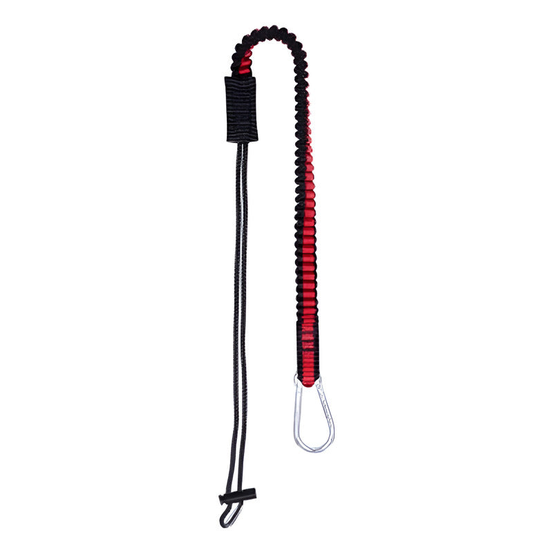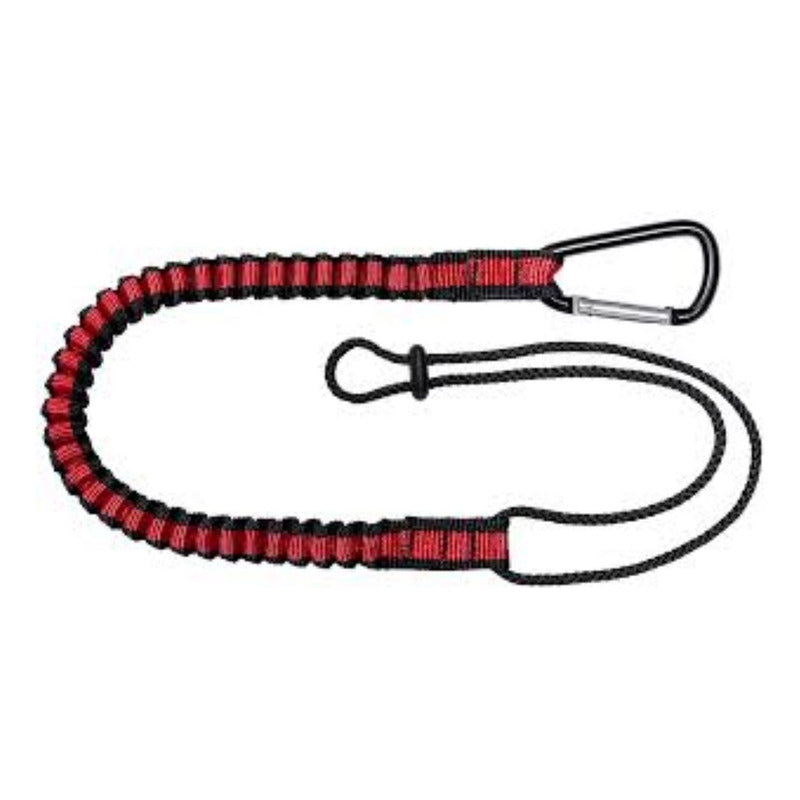 La muñequera porta herramienta elasticado esta diseñada para operarios que trabajen en altura para poder evitar la caída accidental de una herramienta y proteger a los transeúntes que circulan a niveles inferiores Es de fácil y rápido agarre en cualquier momento Largo sin extender 66 cm Largo extendido 150 cm Ancho 20mm Esta diseñada para trabajar con cargas de hasta 6,8 kg cuenta con doble costura en el extremo para asegurar el cordel ajuste de la herramienta a través de una presilla plástica el mosquetón se engancha en las argollas del costado del arnés